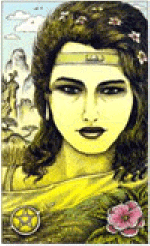 Et fantasiløst, forsiktig og kjærlig barn. Vektproblemer og sterk trang etter søtsaker kan og forklares. Dette er ofte budbringeren, som kommer med gosde nyheter. Kortet betyr også å studere og forholde seg til noe konkret.
