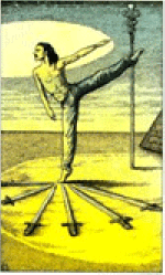 Overvinnelse av en hindring og gå videre. Kortet forteller om en reise, fysisk eller mental, kort rundt vil si mer om det.