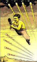 Fart og handling. Tingene åpner seg. Noe raskt og ekspansivt dukker opp. Varsler også om å være forsiktig med å ta beslutninger i all hast. Kan henge sammen med reise, da kortet forteller om nye horisonter. Se på kortene rundt.